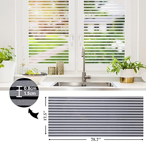 Stripe Window Film Privacy 🍀Recyclable🍀: The product is made of PVC + PET material. It has a long service life. It is easy to move and can be reused.